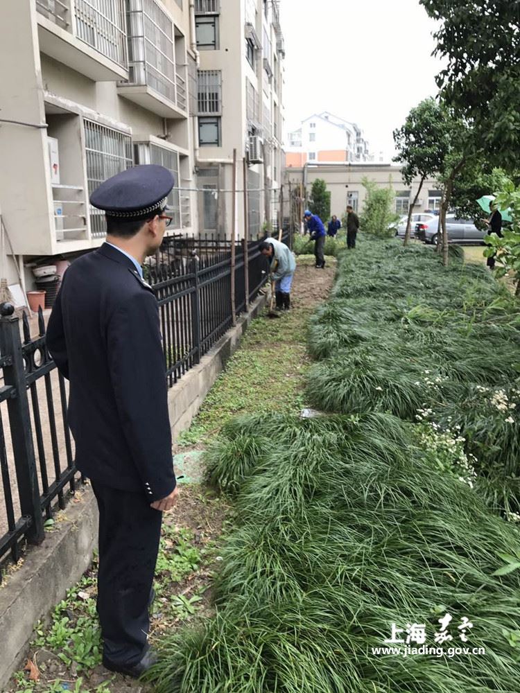 安亭中队:小区居民占绿种菜,城管居委集中整治