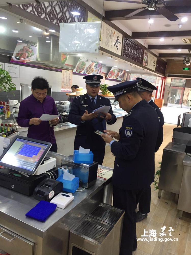 此次检查地点随机挑选安亭财富广场,检查人员随机来到一家名为御朕餐饮的饮食店。检查现场,检查人员查看了店家的营业执照、身份证以及门责合同、餐厨垃圾、废弃油脂备案合同等证明,全面掌握经营者的情况。检查结果显示总体情况良好,部分细节问题店家也接受教育指导后积极予以整改。在检查过程中,队员详细登记记录,掌握被抽查对象的基本信息的同时,制作《现场检查记录单》,做到抽查留痕。