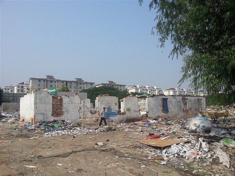 长期以来,位于铜川路与祁连山南路西北角的闲置待开发地块,被外来拾荒及收购废品人员占据并逐渐扩大搭建简易房屋居住,环境脏乱差、安全隐患多,且有围墙阻挡具有一定隐蔽性。嘉定区真新城管中队多次接到群众举报此事,中队领导高度重视,多次派出城管、联勤队员会同街道拆违办人员前往现场查看情况了解历史形成的搭建原因。到场后发现是此处闲置空地面积巨大,已被嘉定某房产公司征地待开发,起先为临时建筑垃圾堆放用地,后来逐渐发展到到收购废品和外来人员搭建居住,总体上分为以上三块区域。