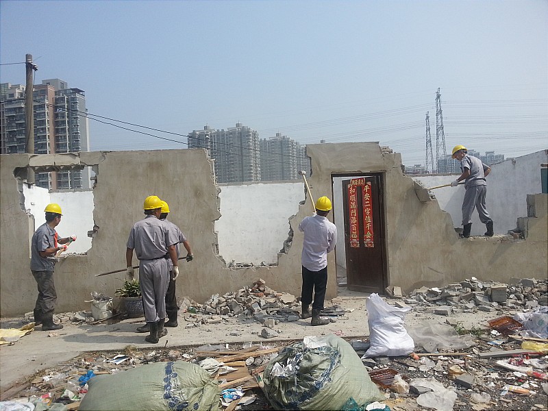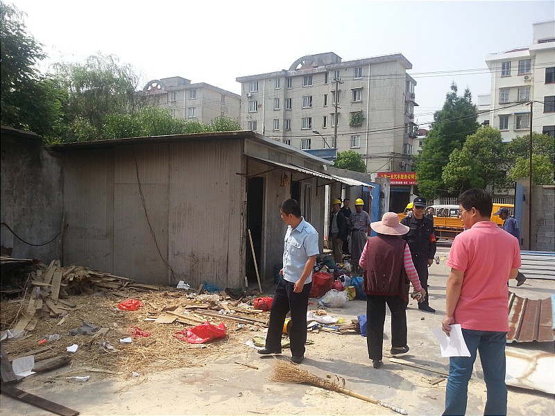 至五月下旬,以上搭建居住人全部搬离完毕。6月1日,城管中队会同街道拆违办到达现场实施拆违,经过一整天的专业人员辛勤劳作,面积达1000多平方的违法建筑顺利拆除,非法设立的废品收购站也得以取缔,安全隐患终于得以消除。