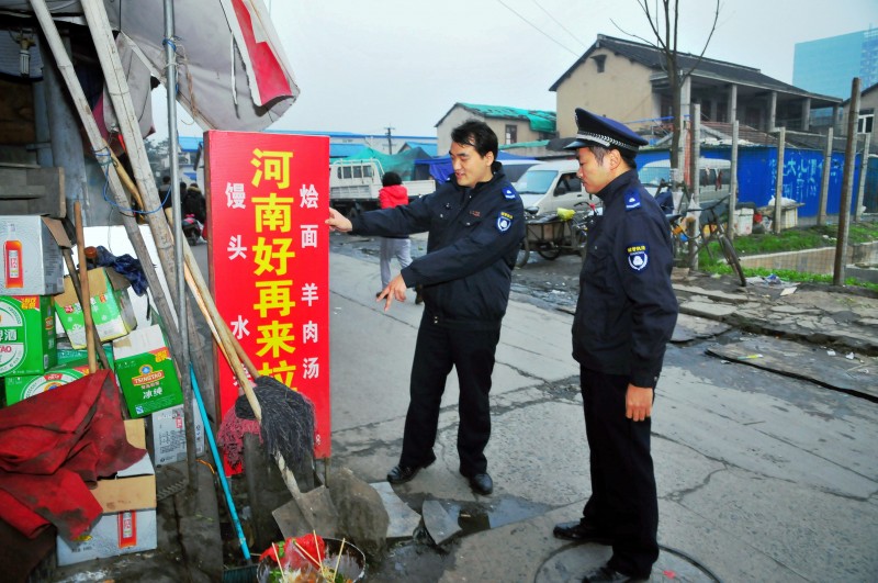 真新城管中队立即行动,于11月28日早晨开始整治行动,当日共暂扣处罚真新区域乱设摊2起,劝导规范江桥镇区域乱设摊12起,清除整条丰江路乱堆物和各类垃圾两大卡车。随后,安排社会力量人员固定看护,遇有乱设摊不服从劝导的,城管队员接报及时前来处罚。经过五天时间的专门管理,丰江路目前乱设摊已经得到了遏制,跨门经营也得到了规范,道路基本已经恢复了通畅。今后,真新城管中队将积极协调争取建立长效机制,与江桥城管中队同步协调,进一步加强日常管理,实时通报情况,实行全方位无缝隙管理,制定专门网格化分队实行定人定岗包片固守,对两街镇交界处无证乱设摊将常态化采用定点设岗和集中整治相结合的方式管理,防止由于两街镇整治管理不同步、管理标准不一致造成这一马路扰民设摊回潮、反弹。