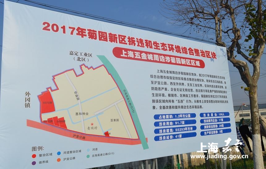 为深入贯彻嘉定区委、区府“补短板、抓落实、破难题”生态环境综合整治工作精神,全面落实《上海市嘉定区社会治理综合整治三年规划》相关要求,切实提升菊园新区生态环境面貌,结合新区社会治理工作实际,菊园新区积极调动各职能部门,投身环境综合治理工作。上海五金城(菊园区域)作为今年的市级指定重点整治目标地块,于2016年年底率先推进实施。