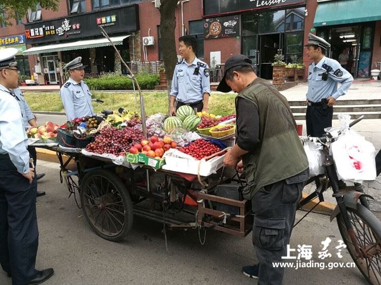 5月19日中午11点30分,南翔城管队员再次全员出击,开展创城“十清”行动,清除街面道路乱设摊、乱堆物、跨门经营、流动水果车等市容顽症。