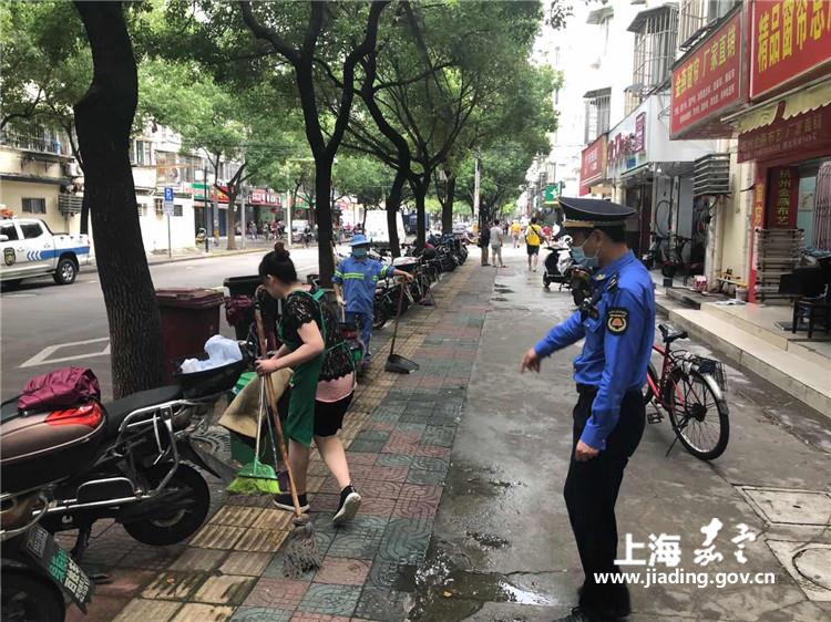 在创城保障工作中,南翔城管全员行动,始终坚守创城复审工作的第一线,迅速落实创城整改任务。实行定人、定岗、定责、定时的“四定”工作机制,采取“徒步巡查”与“机动巡查”、“日常巡查”与“夜间巡查”相结合的工作机制,着重对南翔镇市容短板问题进行查漏补缺,对违规占道经营、占道堆物、跨门经营等容易反弹、回潮的路段做到“回头看”,不放过任何细节,按照整改任务清单,逐一整改。