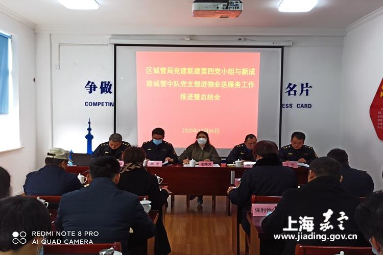 为进一步强化住宅物业管理和城管执法有效联动,提升管理和执法效率。12月4日上午,嘉定区城管执法局党建联建第四党小组联合新成路城管中队党支部召开支部进物业送服务工作总结会。会议由新成路城管中队党支部书记陆健主持。区城管执法局副局长杨威,新成路街道党工委副书记王陈芳应邀参与本次会议。